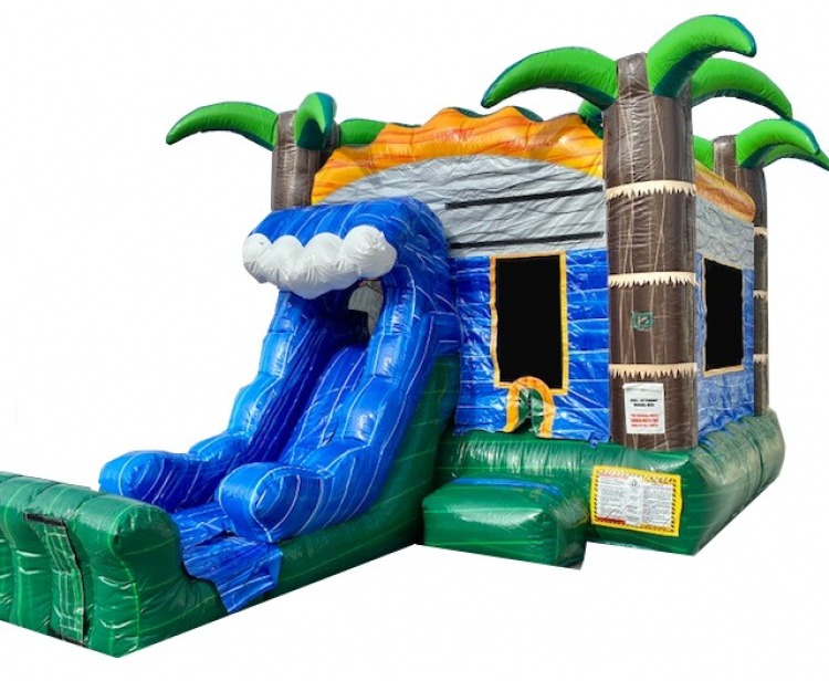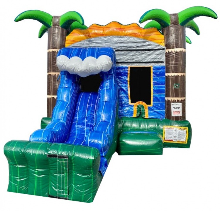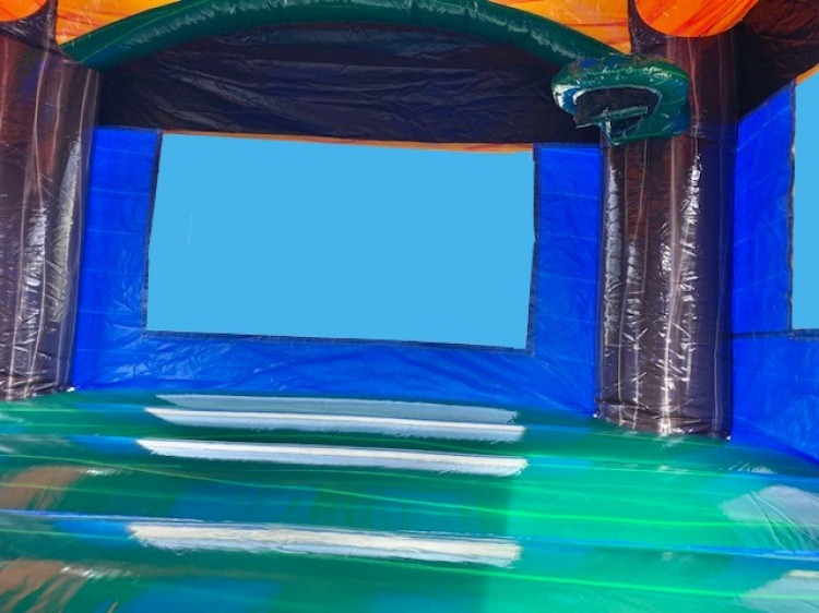 The EZ Monsoon Madness Bounce House Combo has all the fun of a larger combo without the size! Complete with a roomy jumping area, basketball hoop and slide, this bounce house combo is the perfect compact inflatable for maximum entertainment. This Inflatable Party Rental has a flashy design that’s sure to draw a crowd!